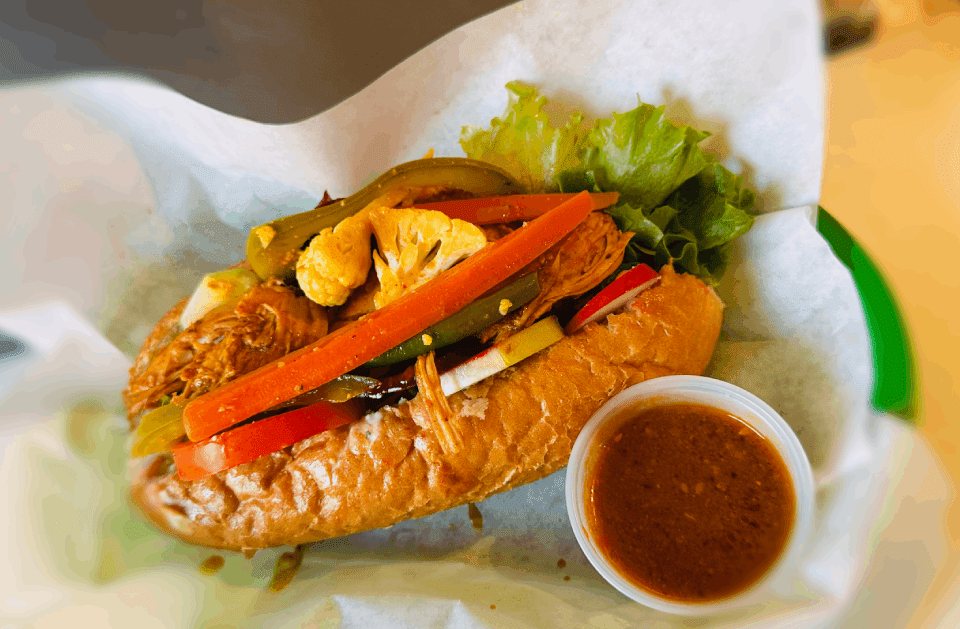 Guests enjoy sponsored outdoor seating that makes our Salvadoran food welcoming to a wide range of dietary needs.